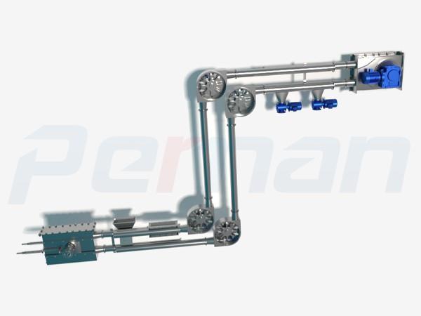 我們生產的全部管鏈輸送機都使用自主開發的計算程序,使得輸送機的輸送管和彎曲部件等不同的部件保持必要的靜摩擦和拉緊力,為設計低噪聲和低磨損提供高準確數據